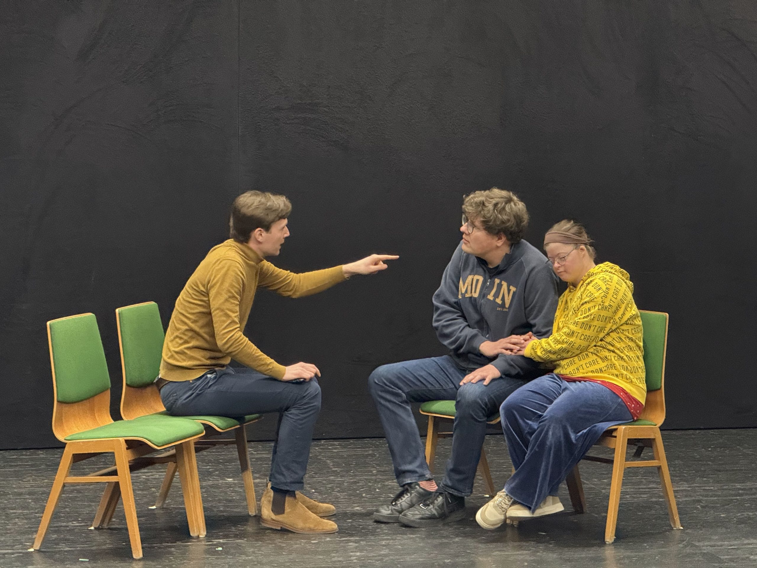 Von großer Bedeutung war es, dass die Szenen von der gesamten Gruppe und nicht von einzelnen Personen kommen. Erst am fünften Tag fand der Feinschliff der Szenen statt und erst hier hat David Diamond Regie geführt, damit die Szenen auch wirklich von den Minotauren selbst entwickelt werden. Dadurch, dass die Schaupieler*innen die Szenenarbeit auf ihren eigenen Erfahrungen basieren sollten, kamen viele Erinnerungen und Emotionen hoch. Unser Schauspieler Mattes Klatt beschreibt, wie emotional der Workshop für ihn war: “Der Workshop war für mich eine sehr emotionale und wertvolle Erfahrung, die ich nicht so schnell vergessen werde.” So ging es allen Workshopteilnehmenden. Auch Natalie betont: “Für mich war das sehr emotional und ich hätte nicht gedacht, dass Theater so emotional ist.”